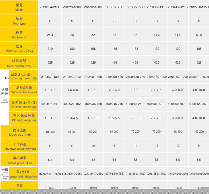 Robust fishing net machine Large amount of weft twine Suitable for making bottom trawl netting, trawl netting, safety netting and so on |