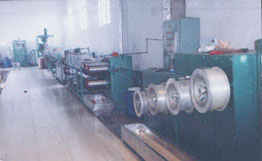 該生產線系本公司NL-65×28-9尼龍絲拉絲機組,螺桿長徑比為28:1,本機組是生產以尼龍為原料的網線、釣線、鬃絲的專用成套設備。日產量可達1000公斤左右。